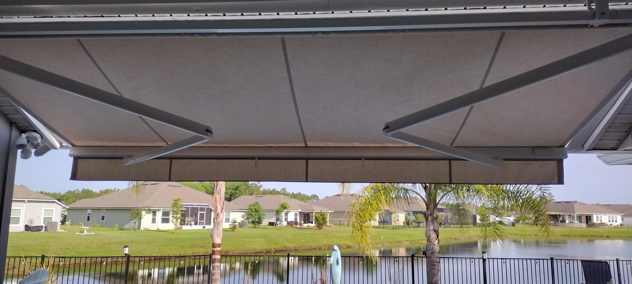 Our awnings can block that harsh Florida sun. Paired with Sunbrella fabric, our awnings are unbeatable! We make the best retractable awning on the market, and it isn’t even close. Whether you need a standard awning, semi or full cassette, roof mount, or one with a drop shade, we can suit your needs. We also back it up with the best warranty in the industry and the most state of the art electronics available. Proudly built and made in the USA, not just assembled!